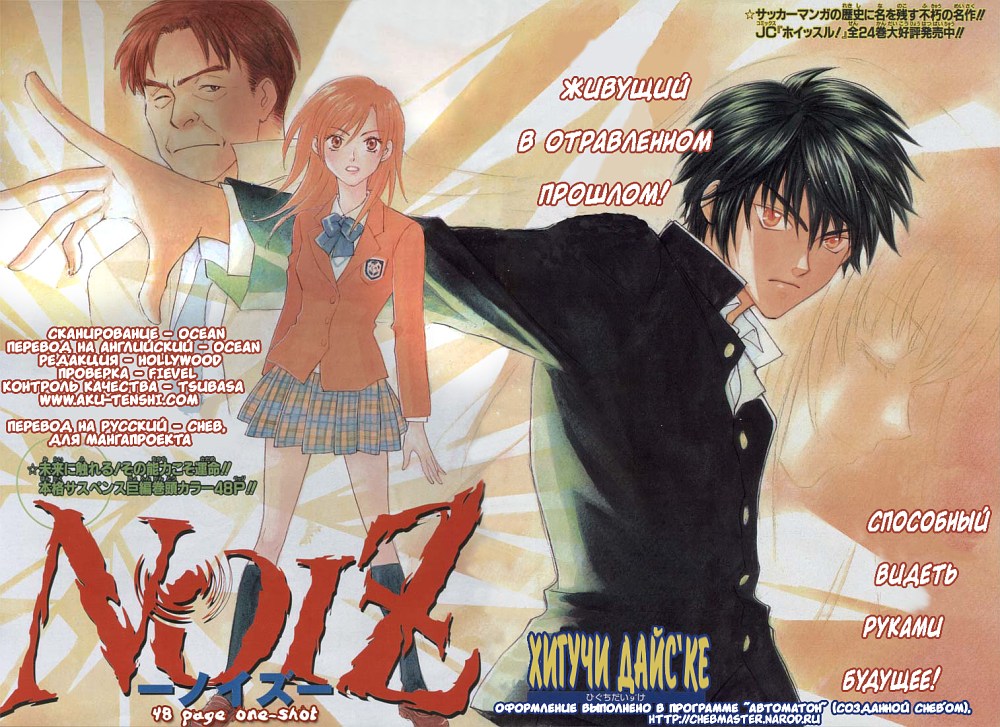 Звуки переведены далеко не все, да и стиль перевода местами хромает - но надо учитывать, что это было "забегом на скорость"... Чистое время перевода и оформления манги (начиная с голых английских сканов, и кончая готовыми русскими) составило около 14 часов (или в среднем минут 17 на скан).